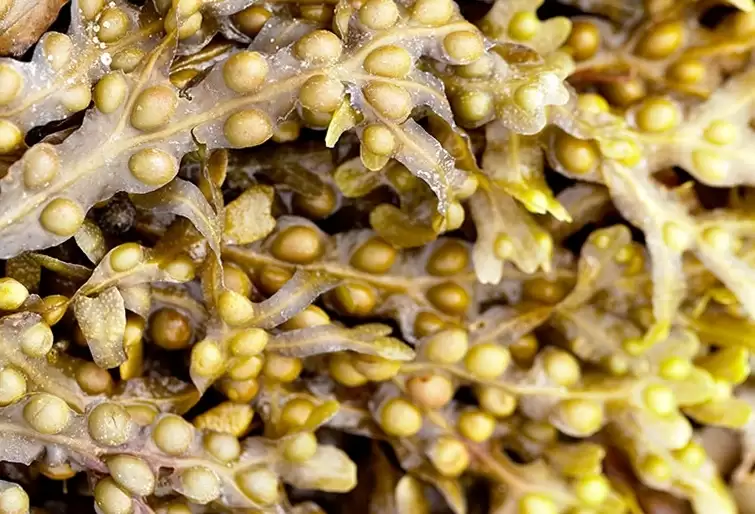 Obtención: Tipo de alga marina de color Marrón comestible, también conocida como vejiga. Posee antioxidantes naturales como los polisacáridos y polifenoles, rica en vitamina B y minerales como el hierro, yodo, magnesio, potasio y calcio, así como en oligoelementos, reduce las irregularidades y rugosidades de la piel para que esta sea uniforme.